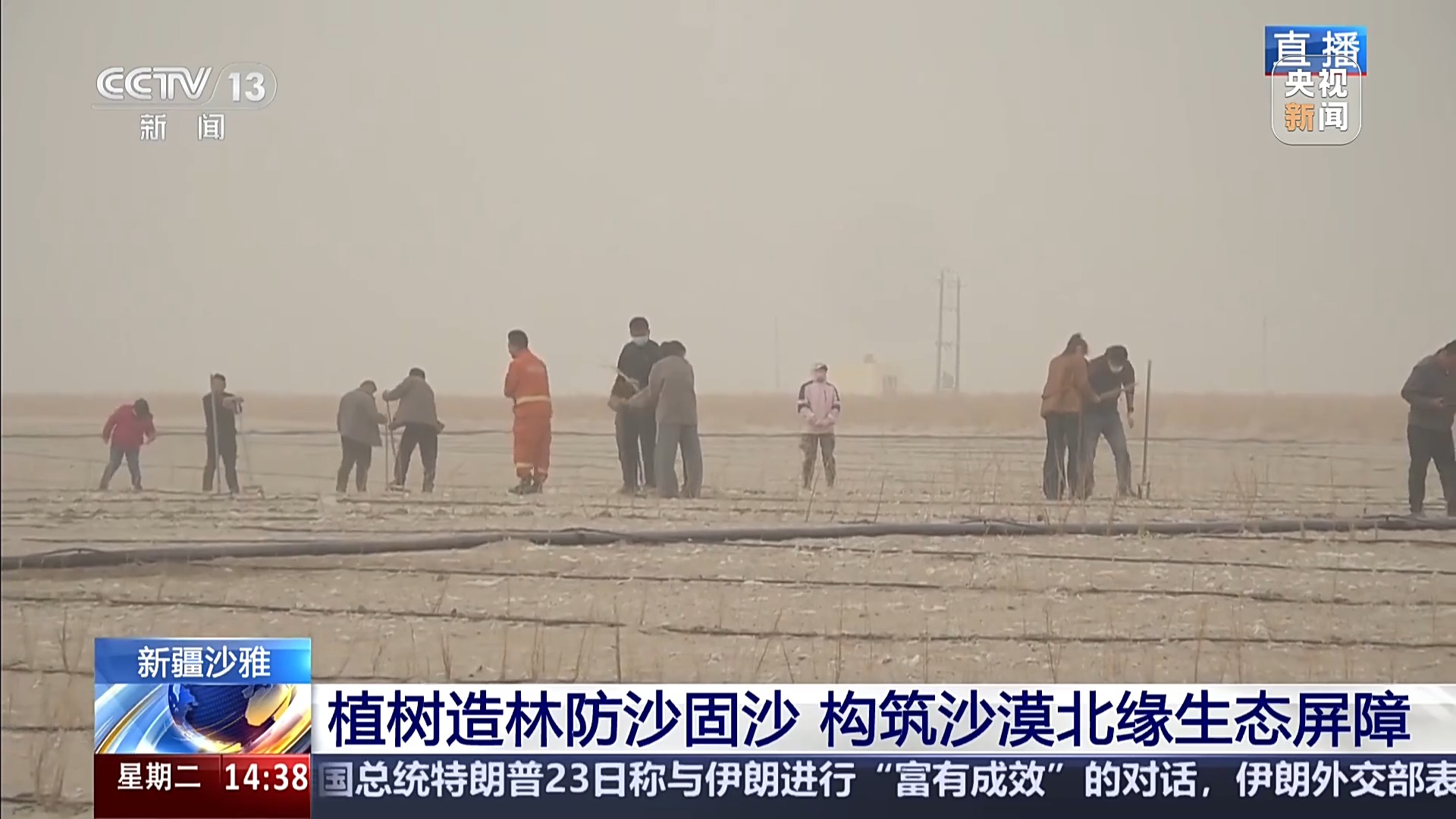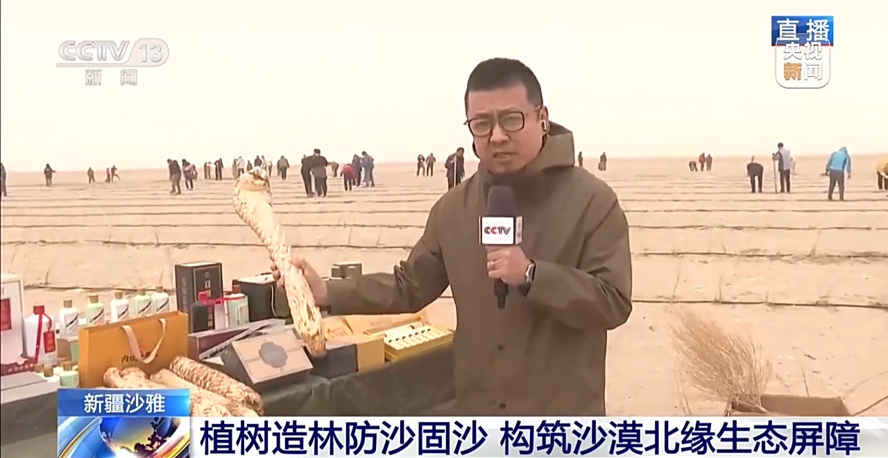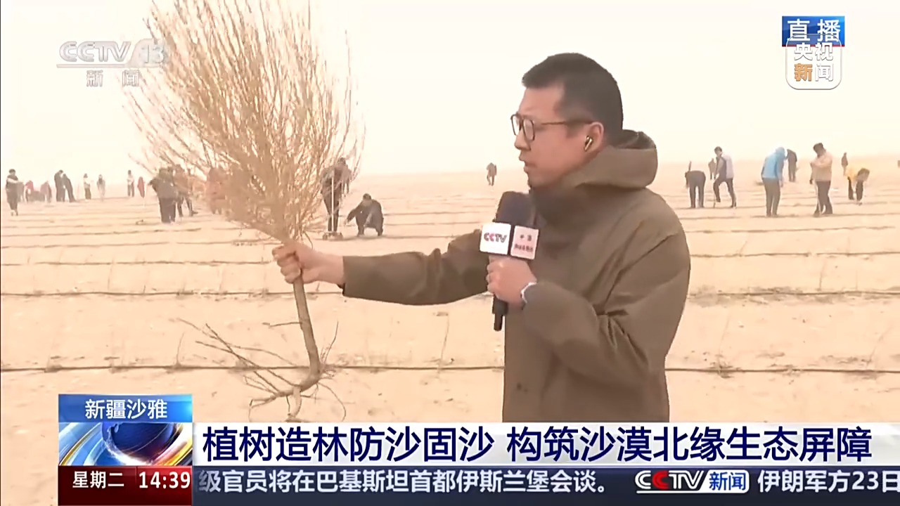 这两天,在地处塔克拉玛干沙漠北部前沿的新疆阿克苏地区沙雅县,当地各族干部群众抢抓时节,植树播绿,织宽加密环绕沙漠的绿色围脖。